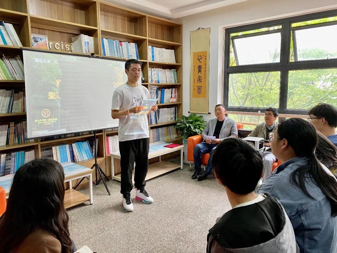 2021级测绘班马楷文同学发言。他在发言中表示,作为唐臣书院的一份子,愿意为书院同学们的心理健康贡献出一份力,将与心力社其他成员一起在指导教师的带领下,结合书院同学特点进行心理健康教育相关工作,组织开展各种健康向上的心理健康教育活动,牢记“健康心灵,凝聚力量”的宗旨,切实培养同学们珍视生命、热爱生活的心理品质,增强同学们的责任感和使命感。