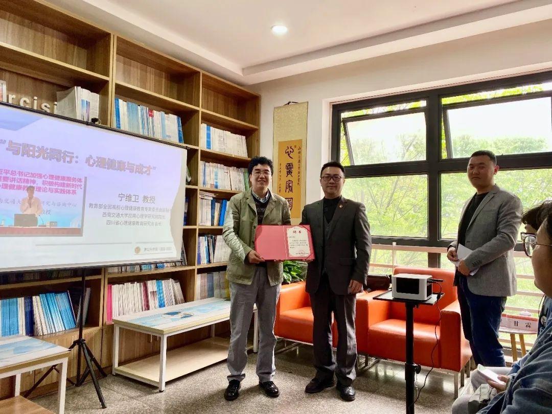 随后,为了增强书院心理育人工作的科学性、实践性,学院聘请宁维卫教授担任书院心理育人工作顾问专家,学院党总支书记甘霖老师为宁维卫老师颁发了聘书。