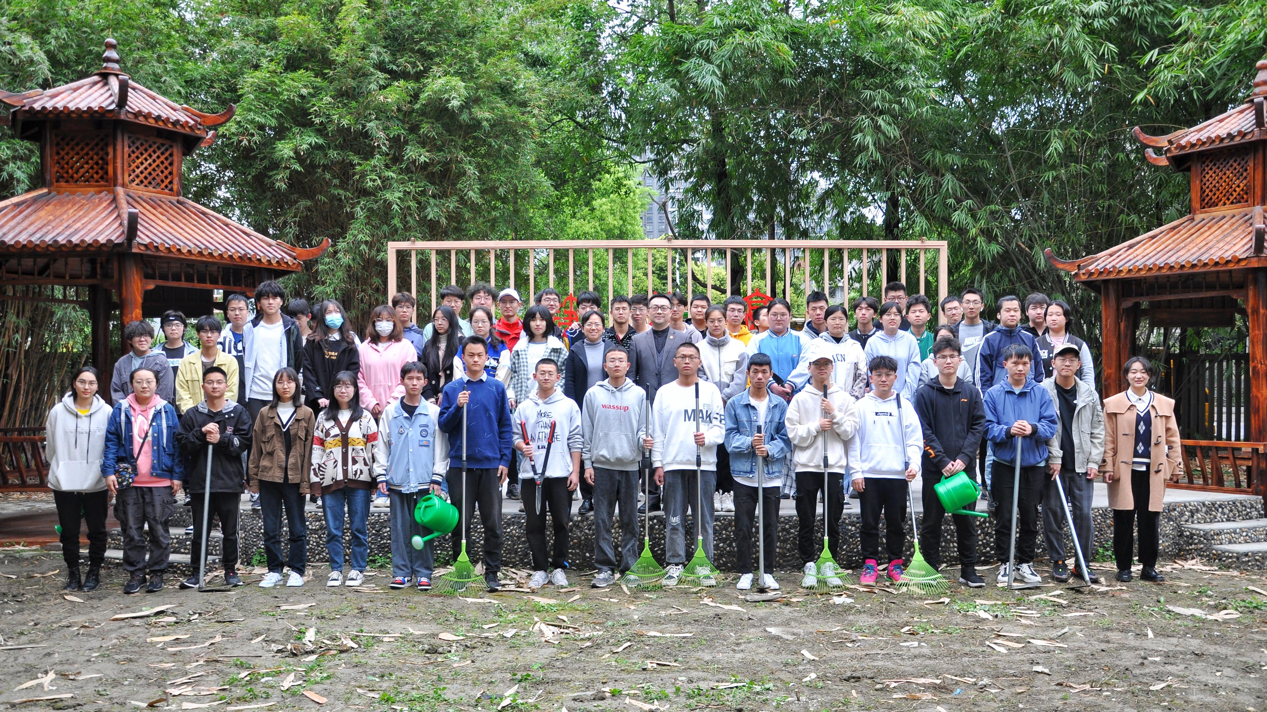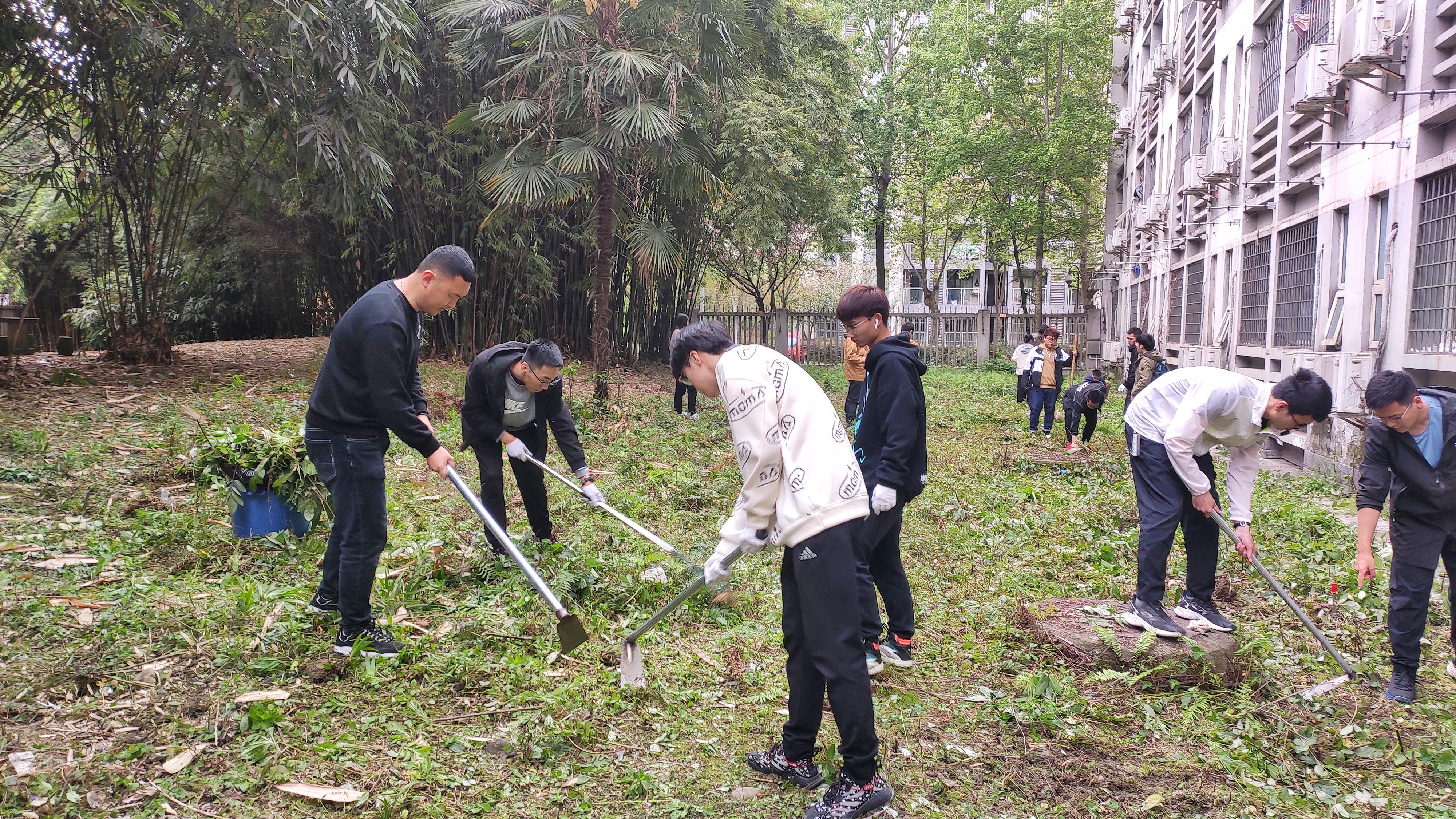 党总支书记甘霖老师、综合办公室主任任凯利老师和辅导员杜秋潼老师的带领下,大家有序领取了劳动工具。16:10活动正式开始。第一次劳动的主要任务是清理落叶以及除草。甘霖书记示范了劳动要领,要求大家认真劳动,用心体会劳动之美,带领同学们一起劳动,增加了同学们的劳动积极性。在老师们的指导和陪同下,同学们以相互协作的方式清理场地内的杂草和垃圾,劳动场地恢复了原来的整洁与生机。历时一个小时,同学们的第一次筑梦劳动体验圆满结束。