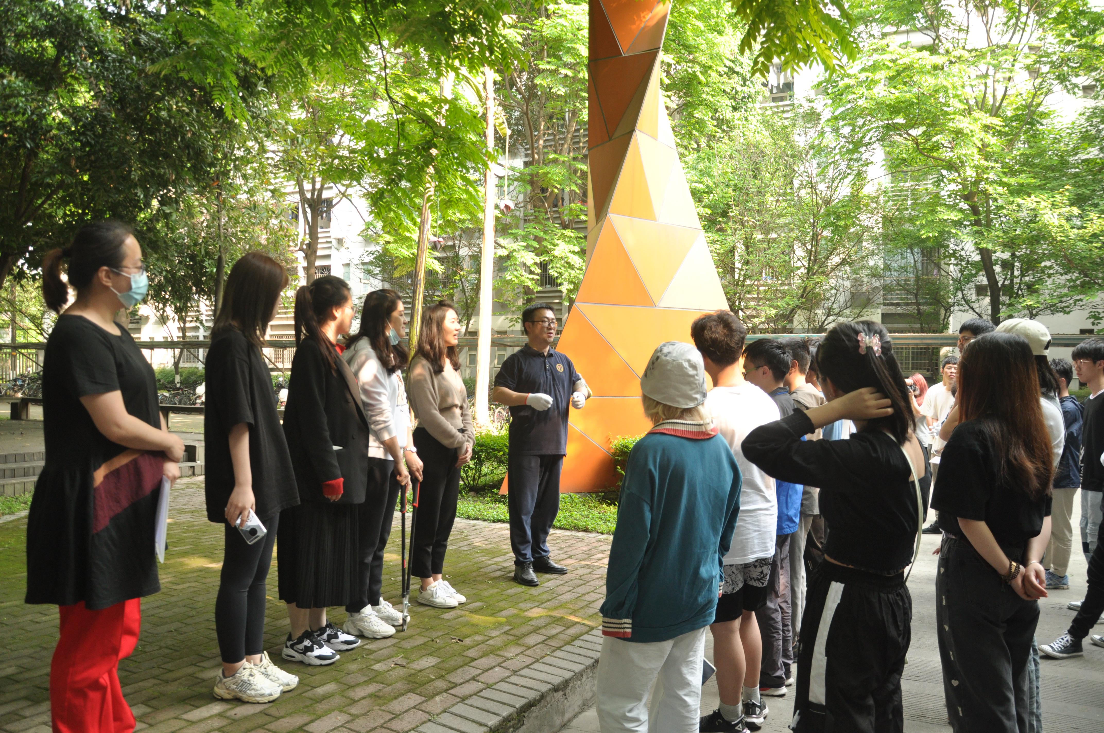 接下来,甘书记将同学们分成了七个小组,每组由一位老师带领。各组分派代表去领取了铺设所需的桶 、锄头、 铲子等工具,并与带队老师一起前往筑梦园和书院前绿化带铺设小径。
