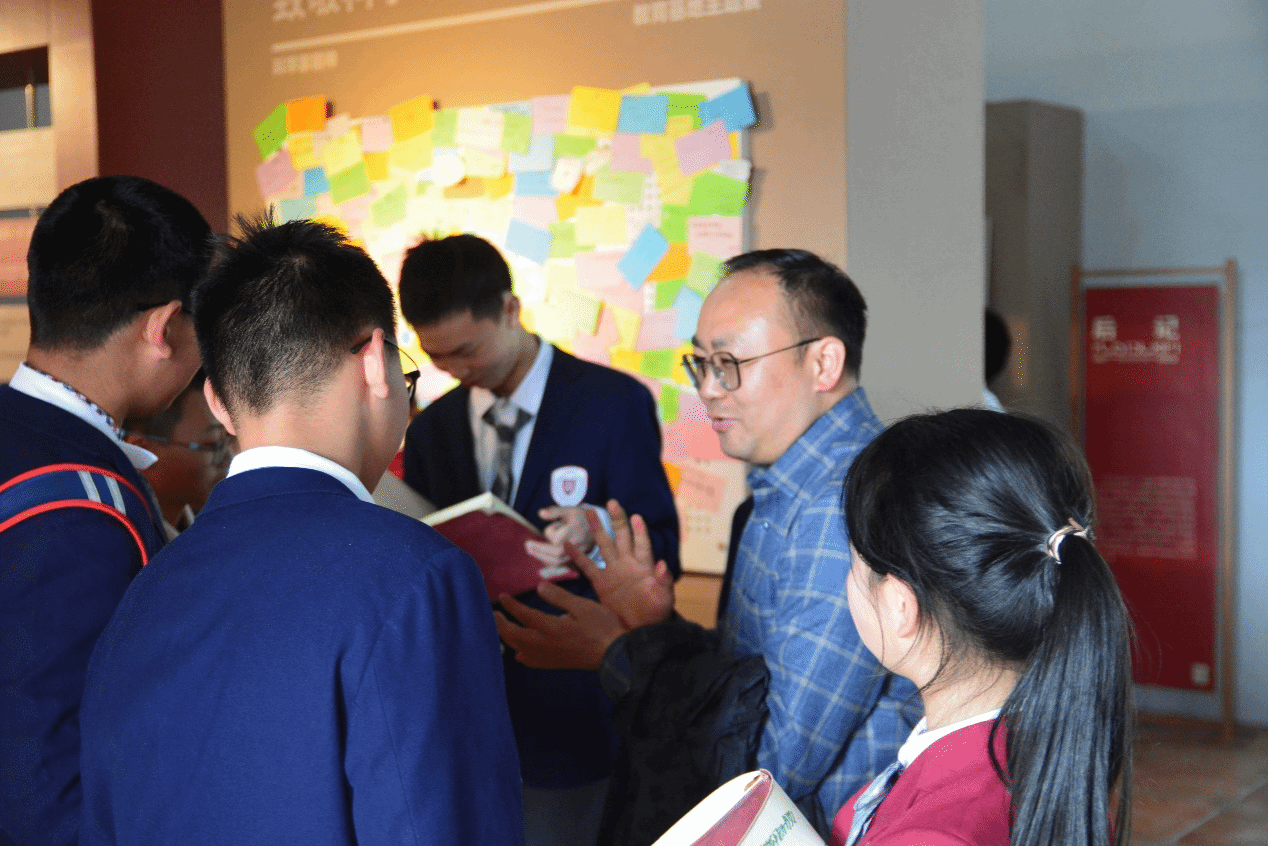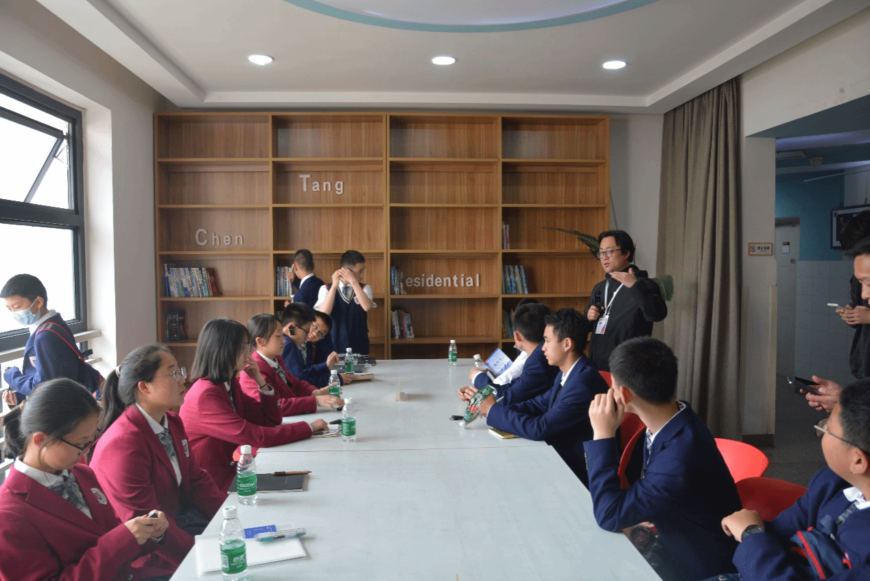 随后,甘霖及各位老师带领同学们来到唐臣书院参观,为同学们讲述书院制育人理念以及书院内各楼层主题的深刻含义。