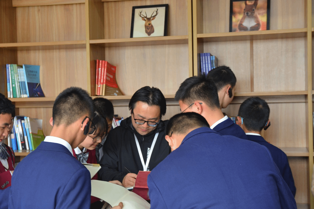 在参观尾声,龙泉西川汇锦都学校带队老师对此次参观中文成人网 (唐臣书院)发表感悟,对甘霖及各位老师们的热情接待表示感谢。参观学生们纷纷表示,走进交大和唐臣书院收获颇丰,感悟良多,进一步明确了自己的目标,有了努力向前的动力。最后,甘霖为龙泉西川汇锦都学校的同学们签名并合影留念,为一个个志存高远的少年郎埋下美好的愿景,相信他们定能做自己人生的奋斗者,以昂扬进取的姿态和信念,抓住美好时光,熬墨蓄势,整装待发,与未来“双向奔赴”!