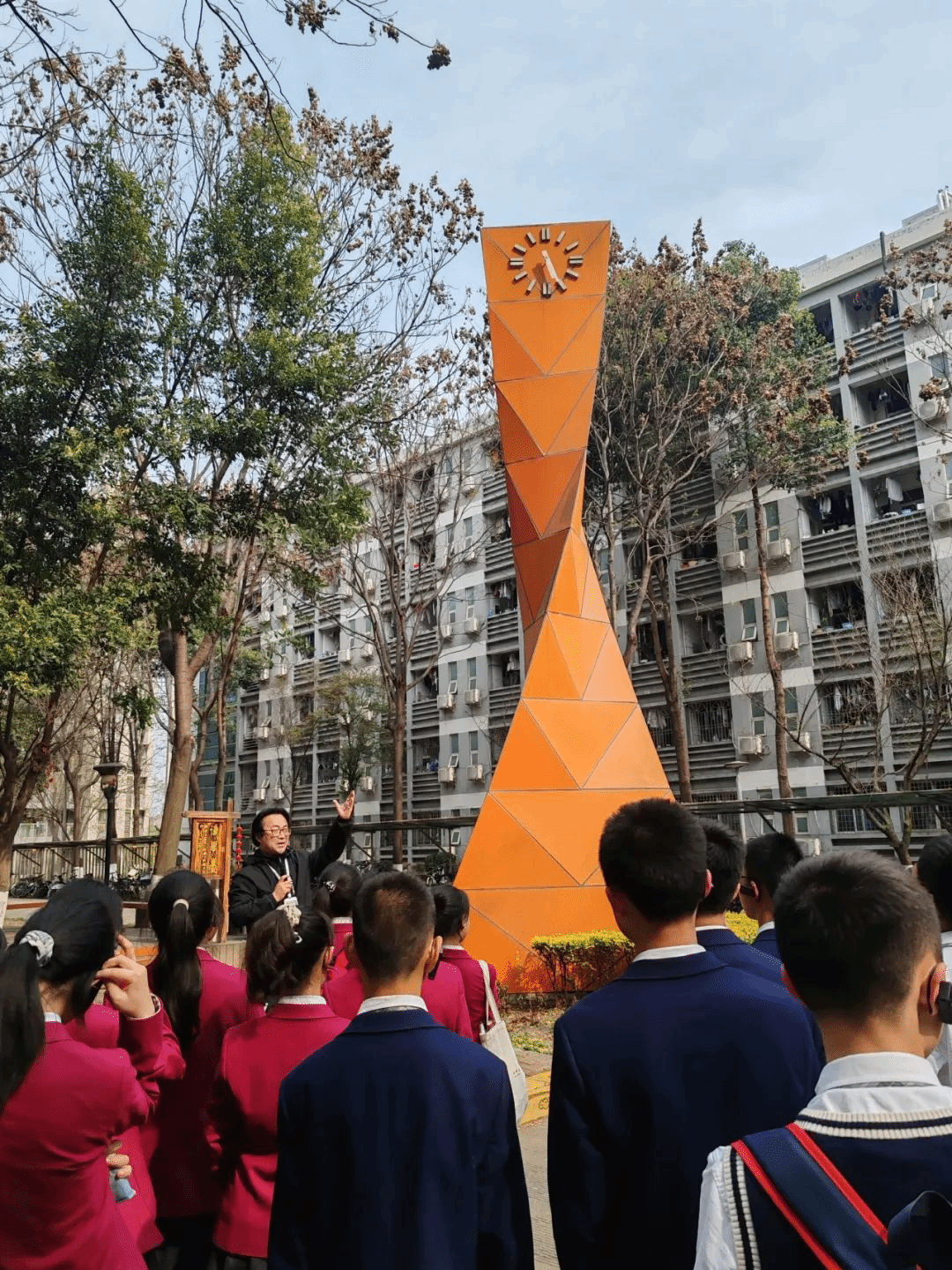 一楼矗立的茅以升青年雕像,代表着志向,人无志而不立。二楼的孔子学堂,致力于传承和弘扬孔子思想,为学生提供深入学习儒家文化的平台。在三楼的唐臣学堂,甘霖深情地为大家讲述了茅以升先生修筑钱塘江大桥、后为抵御日军不得不挥泪炸桥的故事,甘霖说到,茅以升老先生一生都在为国为民付出,他把民族大业放在人生首位,他的精神也时刻激励着我们学子要奋勇拼搏,为实现中华民族伟大复兴的中国梦而不懈努力。此外,师生们还参观了四楼的心理健康走廊及五楼的党建走廊。