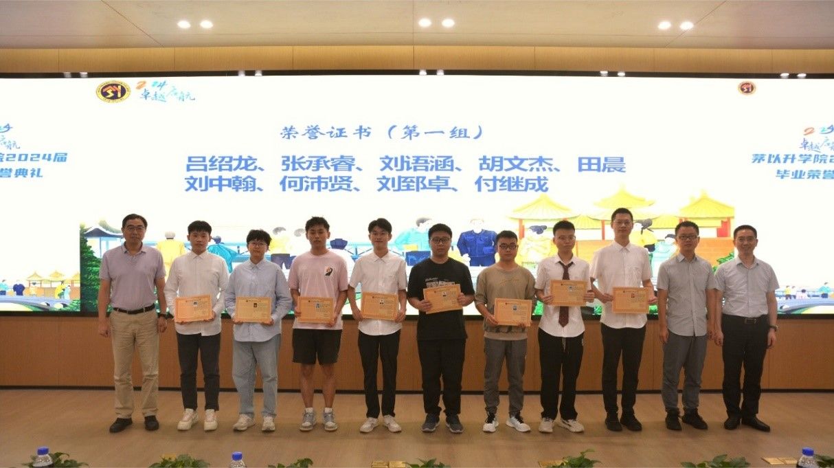 常务副院长崔凯为获得“特优荣誉证书”的6位同学颁发证书;由招生就业处陈岩峰处长、教务处康锐副处长、土木工程学院茅班班导师魏江涛副教授,校团委副书记李娜、机械学院副院长田怀文教授、建筑学院茅班班导师代表熊瑛副教授,图书馆副馆长陈丽华、地球科学与工程学院党委副书记郑波、电气工程学院学生支持办公室主任张婷婷,分别为获得本科毕业生“荣誉证书”的29位同学颁奖。
