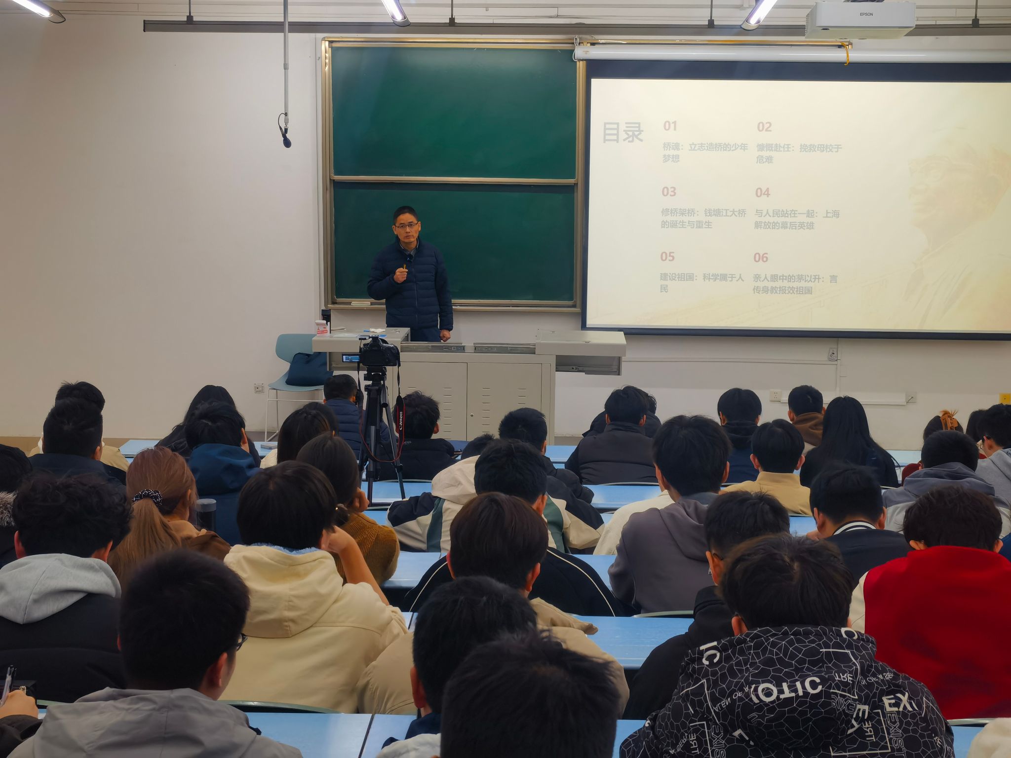 讲座中,李书记通过生动的故事、泛黄的图片、珍贵的视频,让师生们看到了一个既崇高伟大、又亲切感人的爱国知识分子楷模的光辉形象。最后,李书记也号召全体同学:致敬茅老,传承“爱国、科学、奋斗、奉献”的茅以升精神,争做新时代的茅以升!