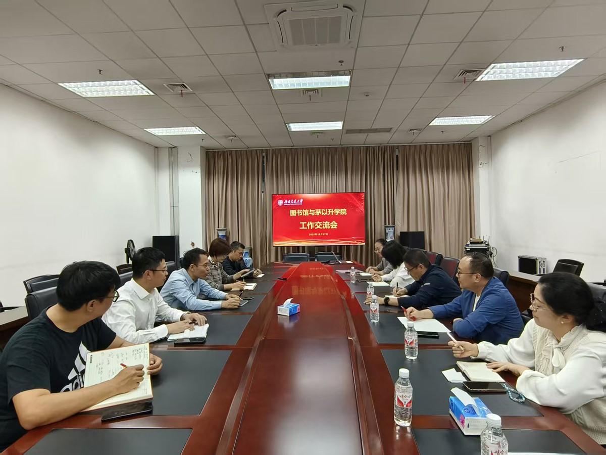 与图书馆举行工作交流会。