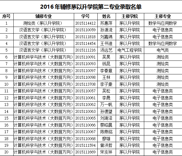 1)计算机科学与技术(大数据方向)辅修专业(录取人数33人)