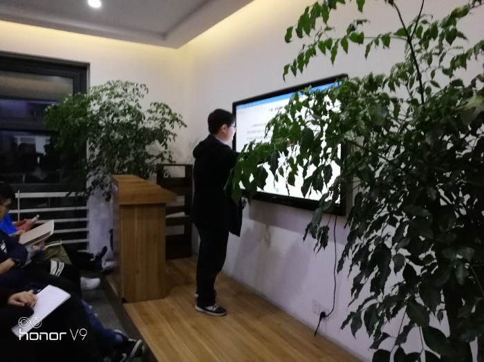 在热烈的掌声中,第一位主讲人余明泽同学走上了讲台。首先,余明泽同学从题目的字眼入手,详细地为各位同学分析解读了本次“新秀杯”A、B两题的重点语句,并讲解了自己的解题思路。接着,余明泽同学回顾了自己一年来的建模历程,分享了自己从数学建模中收获道到的点点滴滴,并希望每位参加数学建模的同学都能珍惜建模的时光。