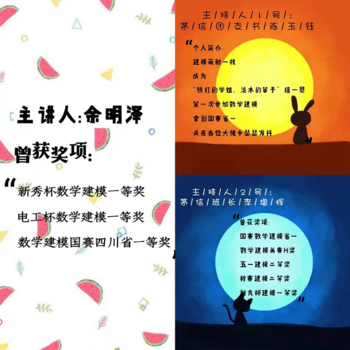 本次活动特别邀请了两位 “数学建模达人”作为主讲人对本次新秀杯赛题思路进行讲解,并分享自己的经验以及小技巧,为首次参加建模比赛的同学们提供帮助。