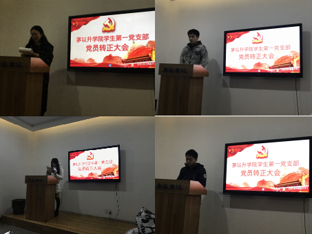 本次大会严格考察了预备党员孟媛等九名同志对党的认识、入党动机及入党志愿,广泛征集群众意见,经支部正式党员无记名投票,一致通过孟媛、丁艺恒、刘桓、郑博、邱元森、史若冰、张赫、龚振华、张钰姝九名同志成为中共党员。以上同志们均虚心听取意见和建议,表明成为一名正式党员后,将不断地改善自身、提升自我。最后,支部书记郭佑星总结发言,对新转正的同志进行要求,要求主要包括牢记入党时间、正确处理好组织入党与思想入党的关系、要经得起党组织的考验,牢记两学一做的要求。