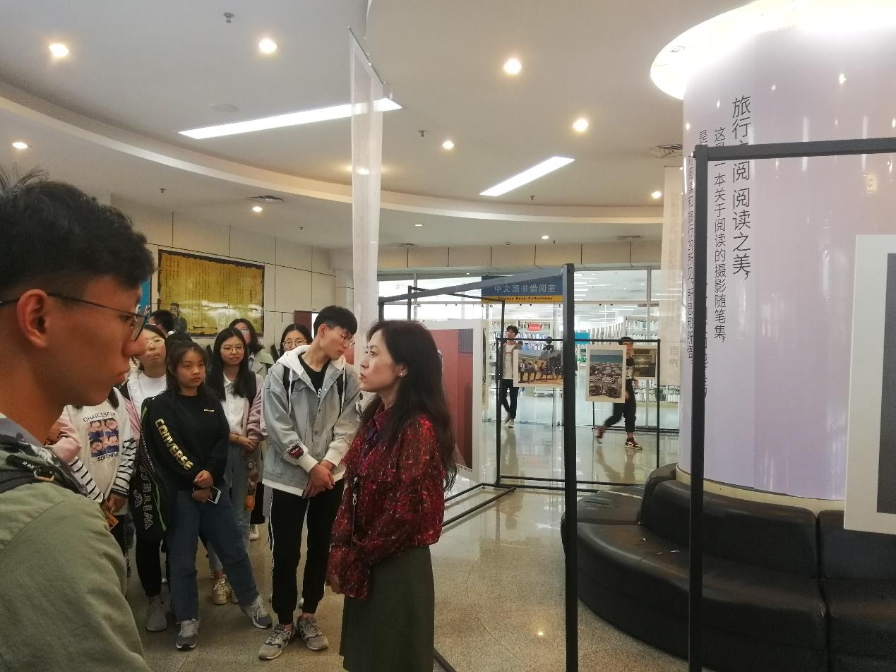 随后大家移步到三楼参观“阅读之美 美若初见”——顾晓光摄影展,本次摄影展是创作者顾晓光博士经过十年旅行,走过四大洲、二十多个国家期间用镜头记录下的许多与阅读有关的照片。照片中的阅读者不分年龄、性别和身份,阅读的地点也不局限在书店、图书馆和教室,这些纪实摄影也恰好记录了一系列信息展现方式的变革。通过摄影展,学生党员们在获得美的体验和心灵洗礼的同时也体验到了多样的人生。