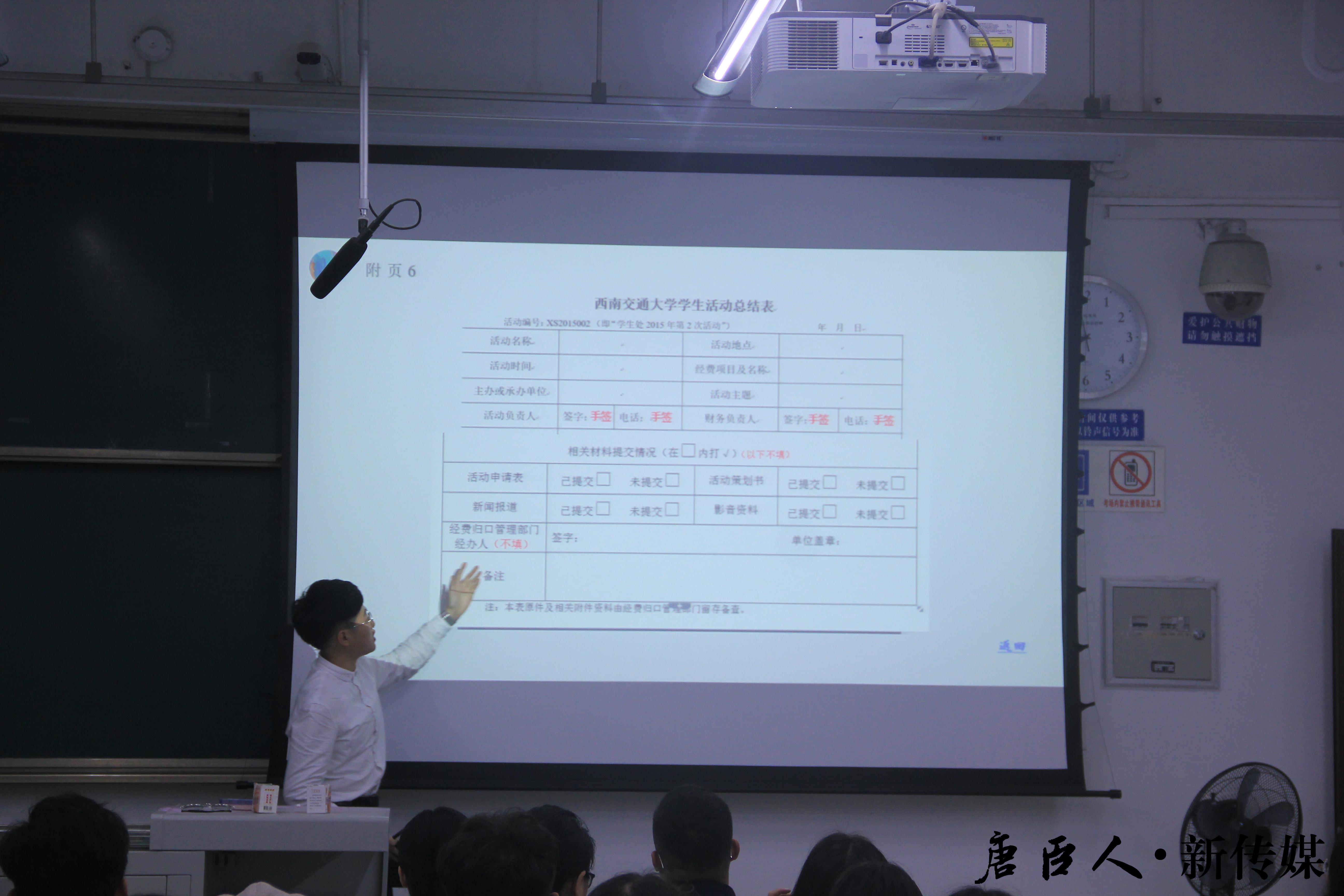 在讲座正式开始前,雷老师首先向各位团学干部强调了本次讲座的重要性,希望大家都能认真学习财务管理知识,增本领、长才干。随后,计财处工作人员对计财处概况及各项活动或项目的报账方法进行了介绍。计财处位于中文成人网
