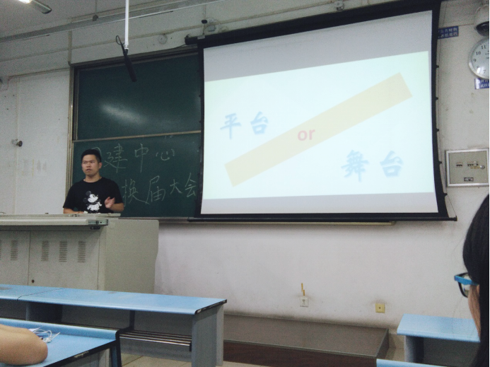第一位候选人是来自15级土木班的李子彦,他从为什么竞选以及对工作的回顾和展望两个方面进行了宣讲。谈及竞选缘由,他说团建中心是平台,也是舞台,没人愿意碌碌无为,来到大学,来到团建中心,就应该选择卓越、选择进取。在工作方面,他则提出要明确计划、承担责任、加强交流。