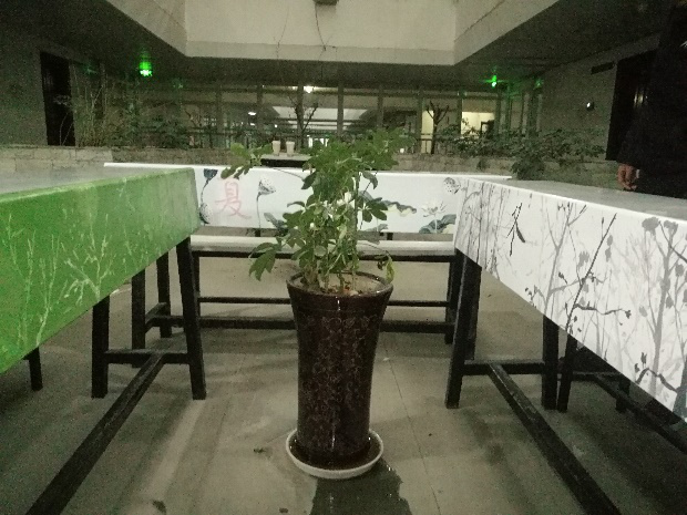 2018年12月9日下午1点,新的一批志愿者带着一精心准备的草图对庭院中的部分桌椅进行了美化的工作,将以“春夏秋冬”为主题的彩绘装饰在桌子的背面,给来到这里的同学以清新的感受。