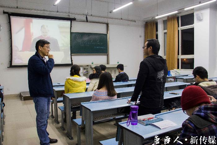 之后,针对如何更好地学习这一问题,郭老师进行了多点解释。他以光电效应为例,金属发生光电效应与其受光强无关,只与其收光的频率有关,借此强调一名学习者一定要端正自己的态度,学习只能在学习者身上发生,于他人无关,只有自己知道自己是否在学习。同时他认为学习应像水一样可以适应任何形状却不为形状所改变其本质,要持之以恒,学会坚持。