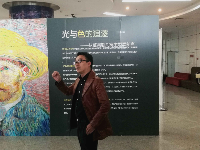 画展伊始,舒老师从印象派的历史地位入手,向同学们阐述了它的重要性:印象派源于严格的学院式古典艺术,经中世纪文艺复兴的变革,是颠覆传统艺术逼真性的一种艺术流派。印象派以梵高与莫奈为首,他们不仅用生活化的临摹对象突破了传统的宗教主题,还在画法技巧上有所革新,随意的笔触与明亮的色彩都使画面变得清新活泼。