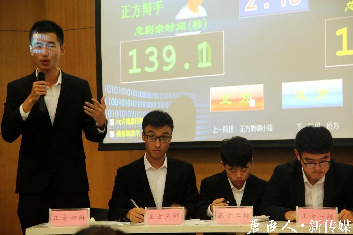 正方电气专业同学与反方中文专业同学进行了决赛的交锋,对“富有还是贫穷更容易暴露人性之恶”