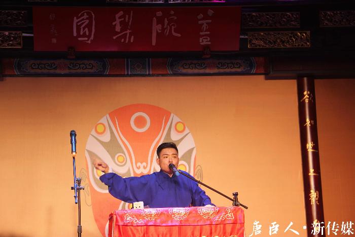 评书活动由三个部分组成,三位风格不同的先生带来了他们精心准备的故事。首先上台评书的是贾晓荻先生,他首先系统化的介绍了说书的类型,例如像《三国》这样的长枪书。接着又介绍了说书大家,作为袍带书的《杨家将》和短打《三侠五义》等,并且解释其来源。