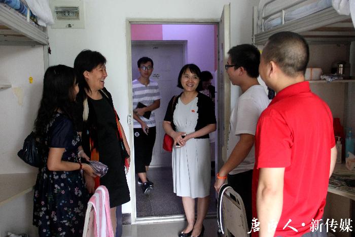 冯院长一行先是在一楼亲切问候了为迎新工作不断忙碌的宿管阿姨,对她们的付出表达了衷心的感谢。冯院长表示,阿姨们其实是与同学们接触最多、帮助最多的人,正是她们的不辞辛劳保障了书院的和谐环境。