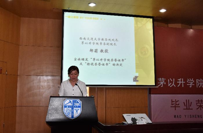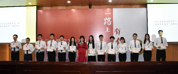 对李雯婧、陈璋、袁站东、刘元立、章懰、吕洋、张妍、田弘长、赵伊楠、孙越、刘欢、汤皓、赵雪薇、左盟、姜晗、吴帅16名同学颁发特优荣誉证书,对聂平稳等163名同学颁发荣誉证书的决定。冯晓云院长为获得特优荣誉证书的同学们进行了颁奖。与会各位领导和嘉宾分别为荣誉证书获得者颁发了证书。