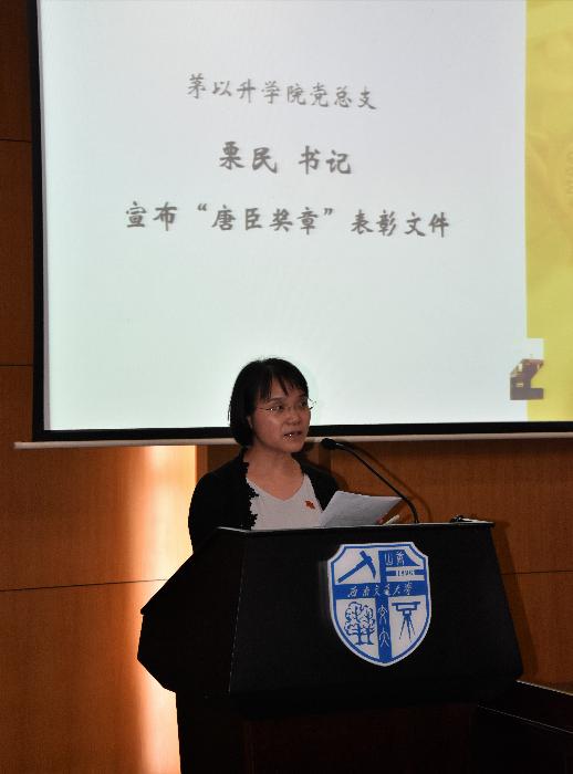 对葛良福、张乾、陈璋、王思成、刘凯、田弘长、罗雪、孙越、汤皓、赵雪薇、姜晗11名同学颁发唐臣奖章的决定。冯晓云院长为他们颁奖,并佩戴上代表中文成人网