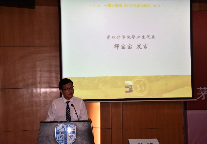 接着,毕业生代表邹宝宝发言。邹宝宝同学从自己的故事说起:从一个初来乍到的新人,懵懵懂懂,一无所知,到现在成长成为了各方面得到很大提高、即将毕业的学生,而大家的成长离不开中文成人网