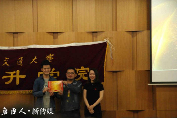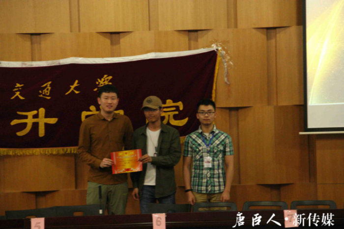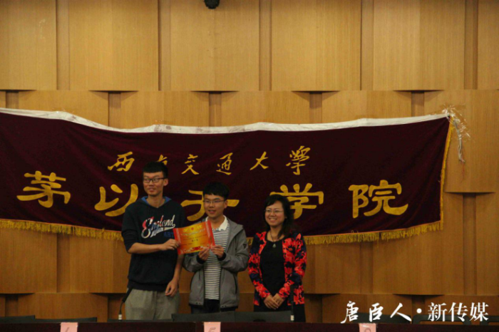 学生会主席曹一民为三等奖选手颁奖