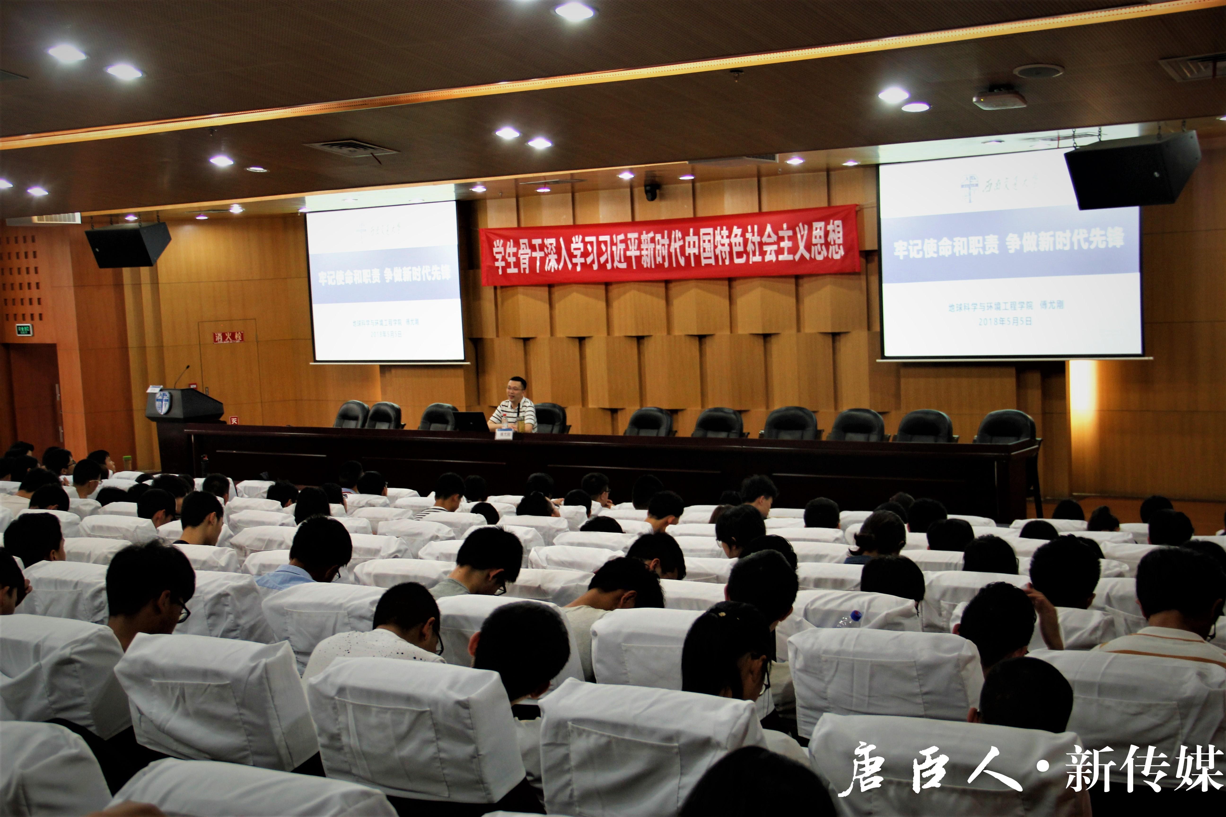 2018年5月5日15:50,由地球科学与环境工程学院党委副书记傅尤刚主讲的班干部培训讲座于图书馆二号报告厅准时进行。本次讲座的主题为“牢记使命与职责,争做新时代先锋”。
