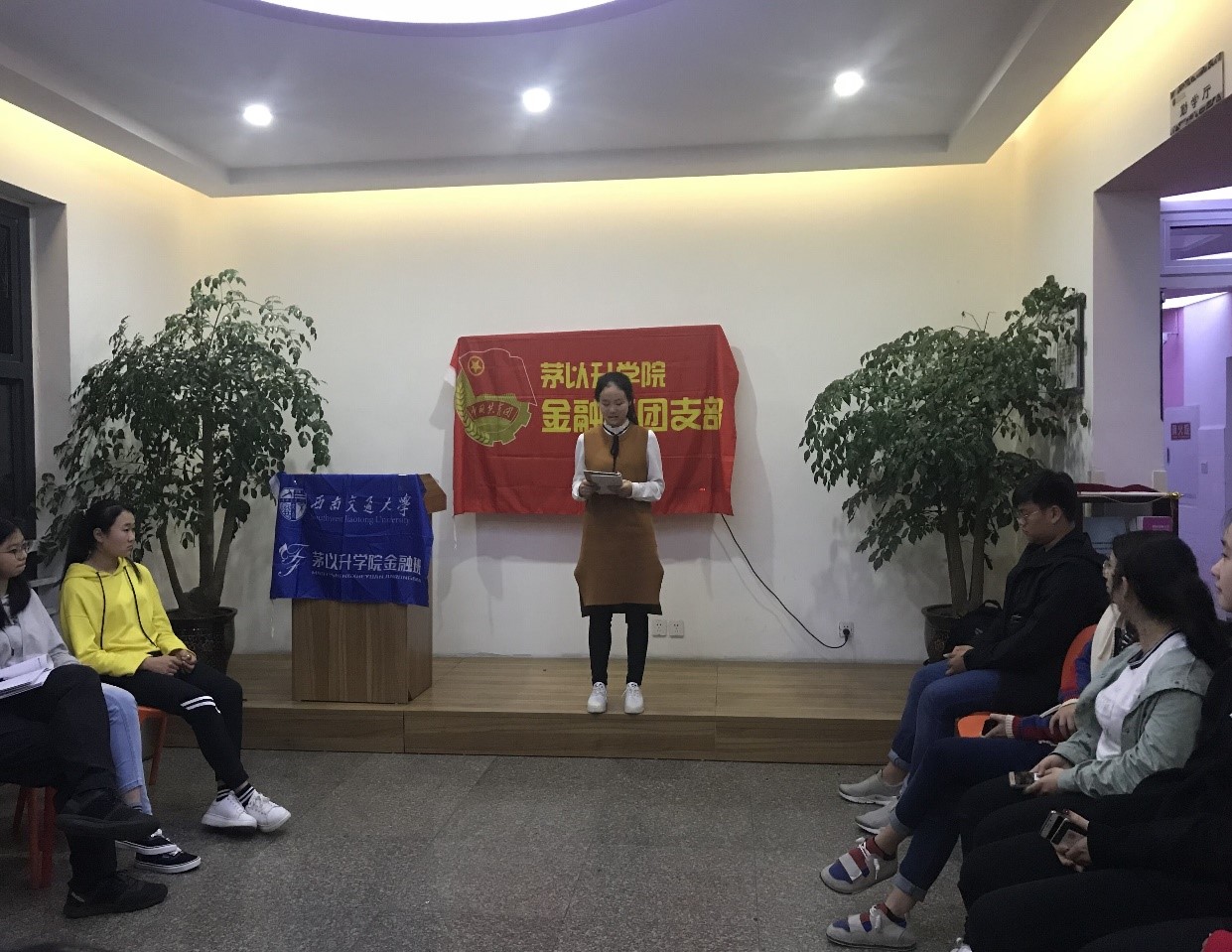 2018年3月29日晚9:30,茅院(金融)2016-01班在唐臣书院二楼召开了本学期第一次班会兼团会。会议邀请了2016级辅导员于雪婷老师出席并提供指导,金融班所有同学全部准时参加。