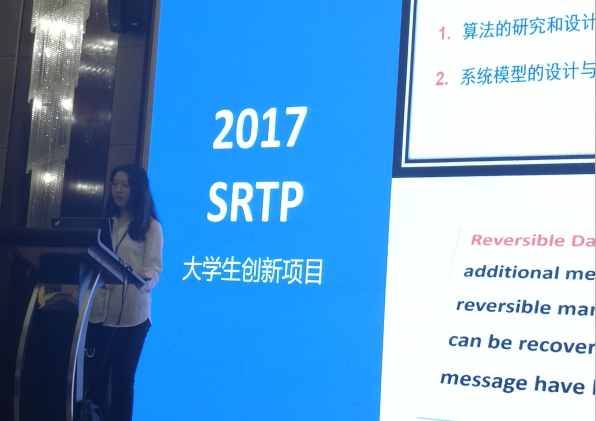 陈玉钰同学受2017国创项目《用于云存储的图像安全管理算法与系统设计》(编号:201710613061)资助,在指导老师尹帮旭的指导下完成了学术论文《Reversible Data Hiding in Classification-Scrambling Encrypted-Image Based on Iterative Recovery》,并被ICCCS2018国际会议录用,在大会做会议报告。同时得到了IEEE Follow Yun.Q.Shi、大会主席孙星明教授等与会专家的一致认可。该论文被推荐到Computers Materials & Continua国际期刊(SCI收录)发表。