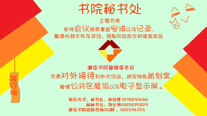 【招聘】第二届唐臣书院管理委员会招新了!!