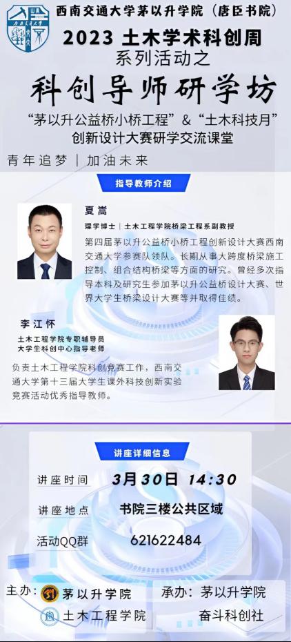 中文成人网 土木学术科创周系列活动之科创导师研学坊——“茅以升公益桥小桥工程”&“土木科技月”创新设计大赛研学交流课堂