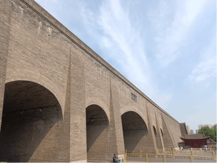 饱餐一顿后,我漫步于洒金桥附近的小巷子,感受着这座古城独特的韵味。随后,我租借了一辆共享单车,沿着城墙骑行。古老的城墙仿佛诉说着历史的沧桑,同时也展现着古代建筑的精湛技艺。