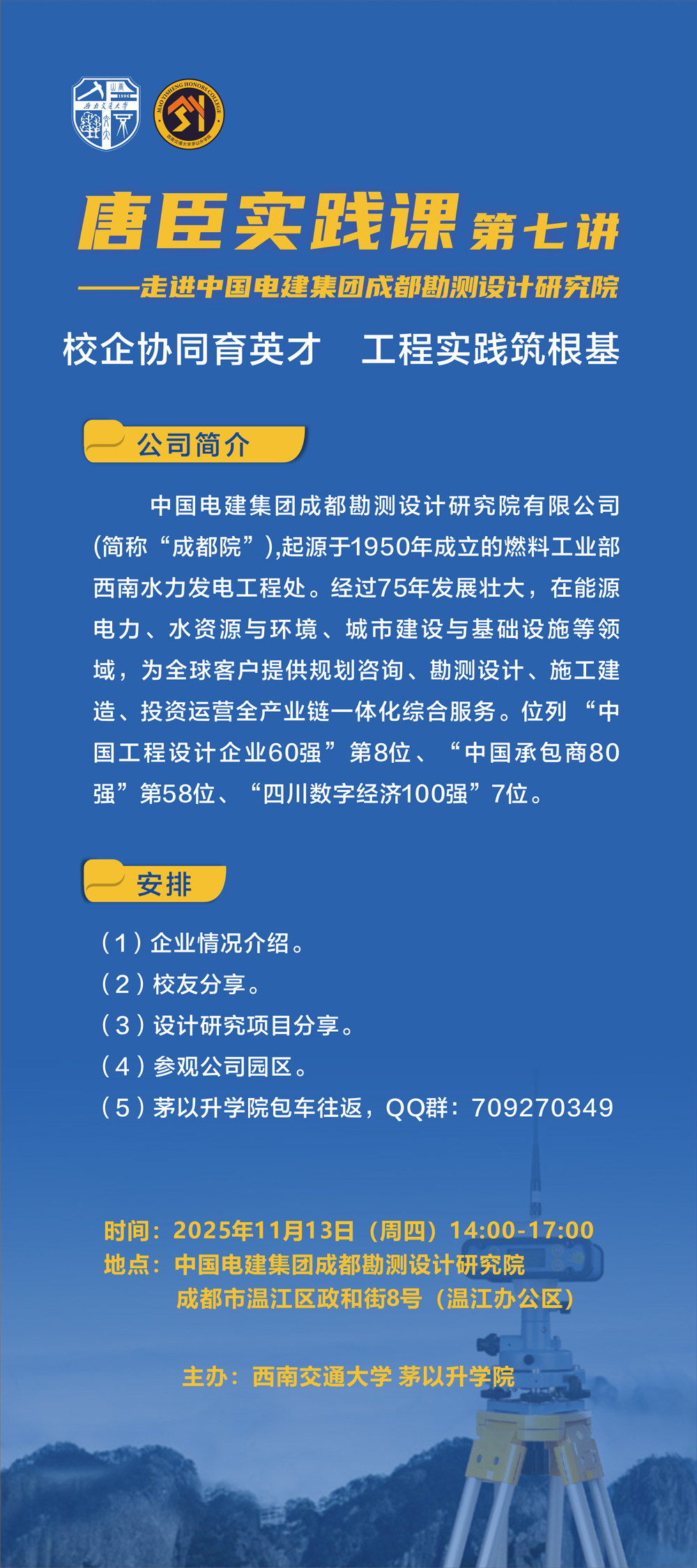 报名啦!唐臣实践课第七讲——走进中国电建集团成都勘测设计研究院