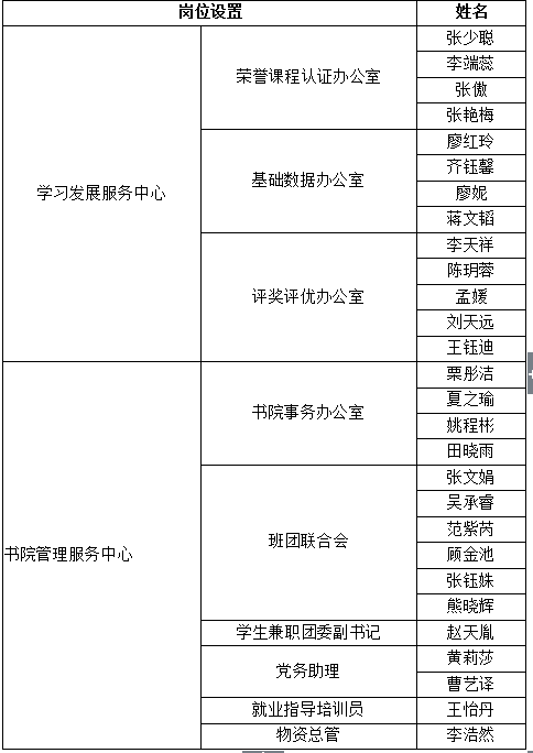 经学生本人申请,评审工作组审核,现将中文成人网 学习发展服务中心、书院管理服务中心录用名单(第一批)公示如下: