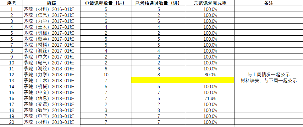 中文成人网 全体同学: 经学院审核,现将各示范班级第十一周考核情况予以公示,具体公示如下: