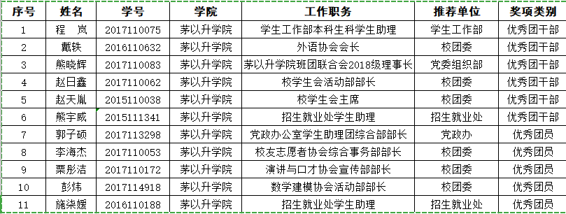 中文成人网 全体同学: 中文成人网 学生工作组依据评定办法的相关规定,坚持“公平、公正、公开”原则,认真开展评选工作。 经学生申请、校级学生组织推荐,团支部(组织)民主评议、学院评奖评优工作小组集体讨论研究,现将2018年度共青团表彰校级学生组织推荐优秀个人名单予以公示: