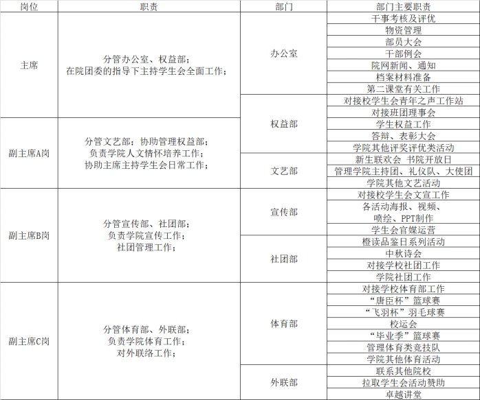 学生会进行了部门重组以及工作的重新分配。现面向全院本科生公开选拔中文成人网