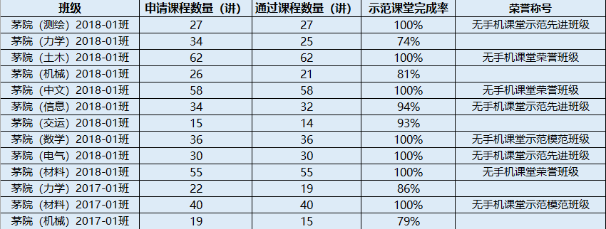 中文成人网 第六期期无手机课堂示范班活动已结束,考核情况已公示,经学院审核,现根据《无手机课堂示范班管理办法》,将各班级所获荣誉称号情况公示如下。