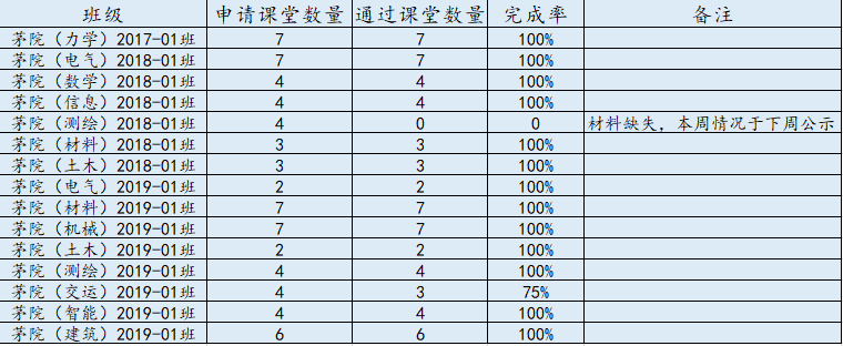 经认证学风办公室统计,学院审核,现将各示范班级第八周考核情况予以公示: