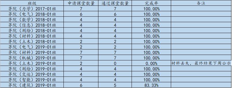 经认证学风办公室统计,学院审核,现将各示范班级第九周考核情况予以公示: