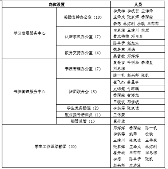 经学生本人申请、资格审核和面试选拔,现将2020-2021学年中文成人网 学习发展服务中心、书院管理服务中心录用名单公示如下。请以下同学尽快实名加入两大中心QQ群:1080164951,备注:年级-岗位-姓名,便于信息通知和交流。
