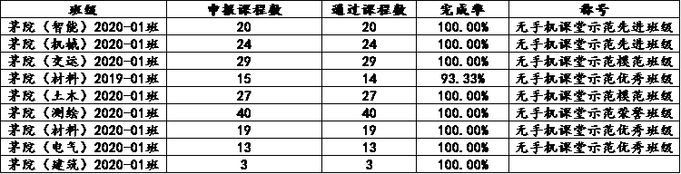 中文成人网 第九期无手机课堂示范班活动已于2020-2021学年第二学期圆满完成,且取得了较好的实践效果,现根据《中文成人网 无手机课堂示范班管理办法》,将各班级所获荣誉称号情况公示如下。