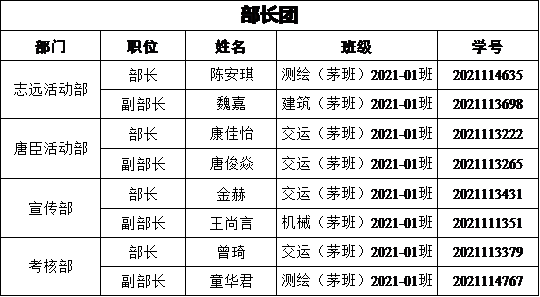 第十二届青年志愿者协会干部任职名单做如下公示: