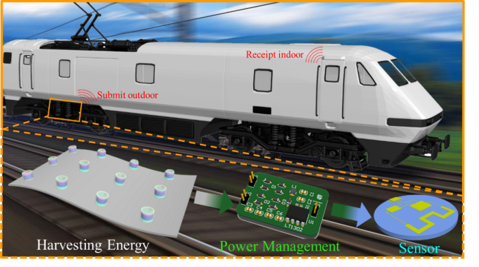 图2 在高速列车上,将振动能收集起来转化为电能,通过电源管理技术为后端的传感器供电,以实现实时的无线监测
