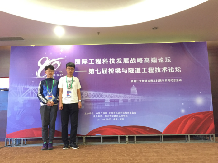 26号下午,两位同学在杭州之江饭店参与了国际工程科技发展战略高端论坛。在钱塘江大桥通车80周年之日,来自海内外的诸多桥梁专家、学者齐聚西子湖畔,共同回顾多年来在桥梁隧道专业取得的多项成绩,以及展望未来在桥梁隧道专业的发展前景。