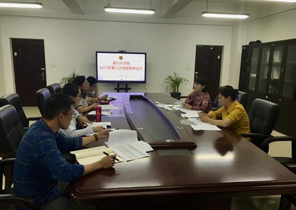 在犀浦校区X1122会议室召开本年度第八次党政联席会议。学院党总支书记栗民、常务副院长郝莉、党总支副书记王霞、党总支委员柯小君以及辅导员毛盾、吕黎参加了会议。会议由王霞副书记主持。
