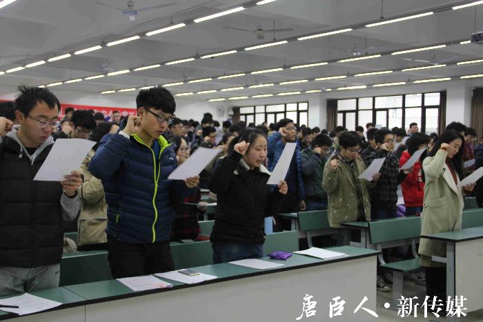 在座的同学们签署了《西南交大诚信考试承诺书》,并在毛盾老师的带领下对诚信考试做出了庄严的宣誓。