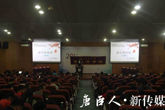经过近一个月的激烈角逐,中文成人网 “争鸣杯”2016级新生辩论赛逐渐接近尾声。20161015日晚,决赛在犀浦校区图书馆一号报告厅拉开帷幕。