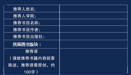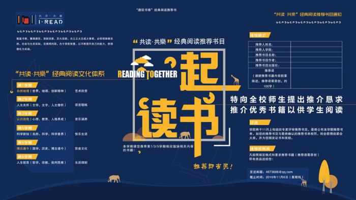 为集思广益,现向全校师生发出推介恳求,推荐优秀的书目以供学生阅读,推荐即有奖品赠送。